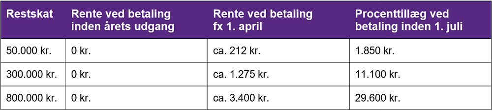 NB! Der anvendes rentesats 1,7% og procenttillæg 3,7% (2022-restskatter).
