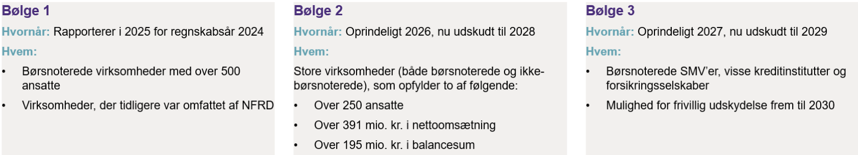 Faktaboks: Hvem er omfattet og hvornår? De oprindelige CSRD-kriterier for de tre første bølger: